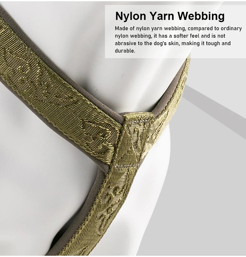 The pet harness is made of nylon yarn webbing, compared to ordinary nylon webbing, it is more softer and is not abrasive to the dog's skin, and this material making the straps of the pet